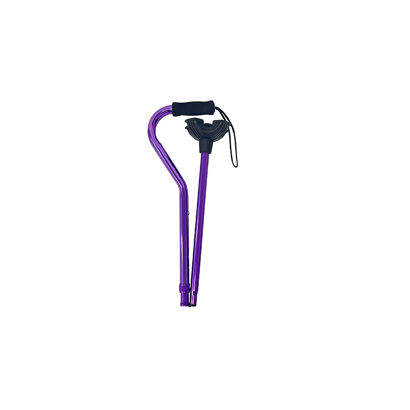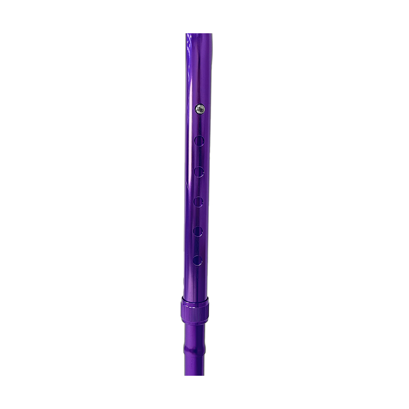 Bastón asimétrico de aluminio anodizado morado con mango de espuma.
